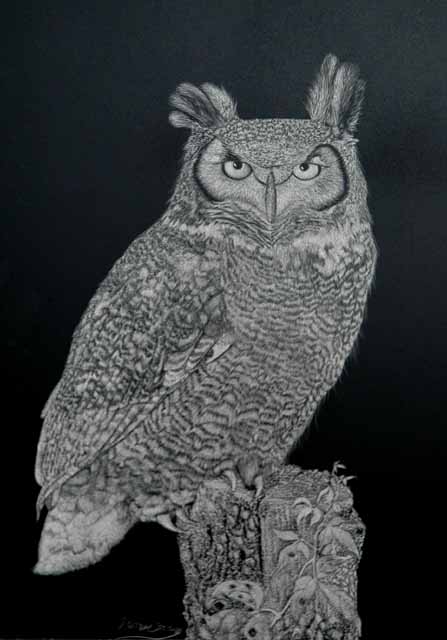 Most of my mixed media works are scratchboard plus watercolor. Scatchboard works are included here since the media is india ink over chalk. Stipple works are india ink on paper.
